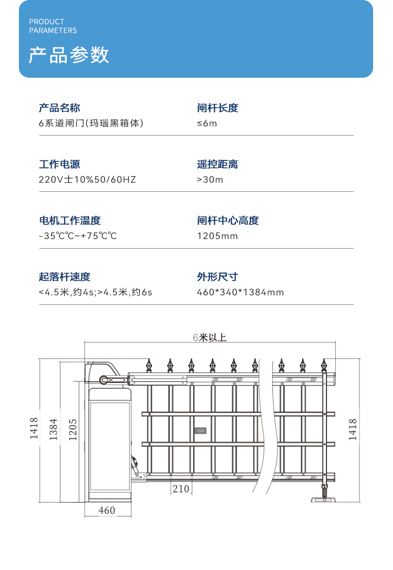 高度1.42米,長度可達(dá)6米,起桿速度4~6s