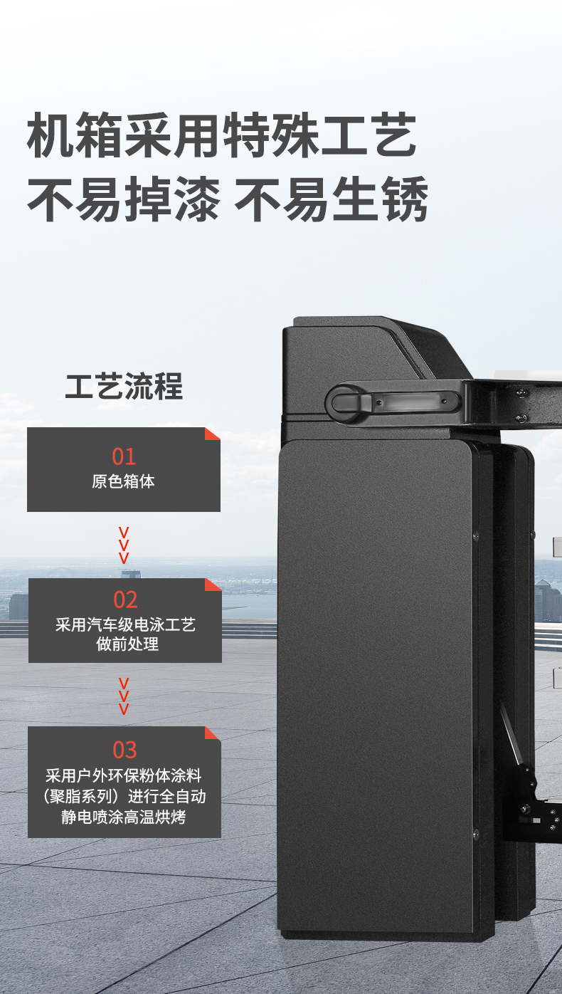 標(biāo)配防風(fēng)座,固定閘桿支撐腳,遇強(qiáng)風(fēng)有效減小閘桿損壞幾率