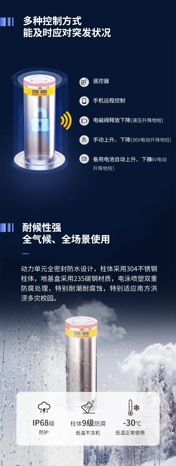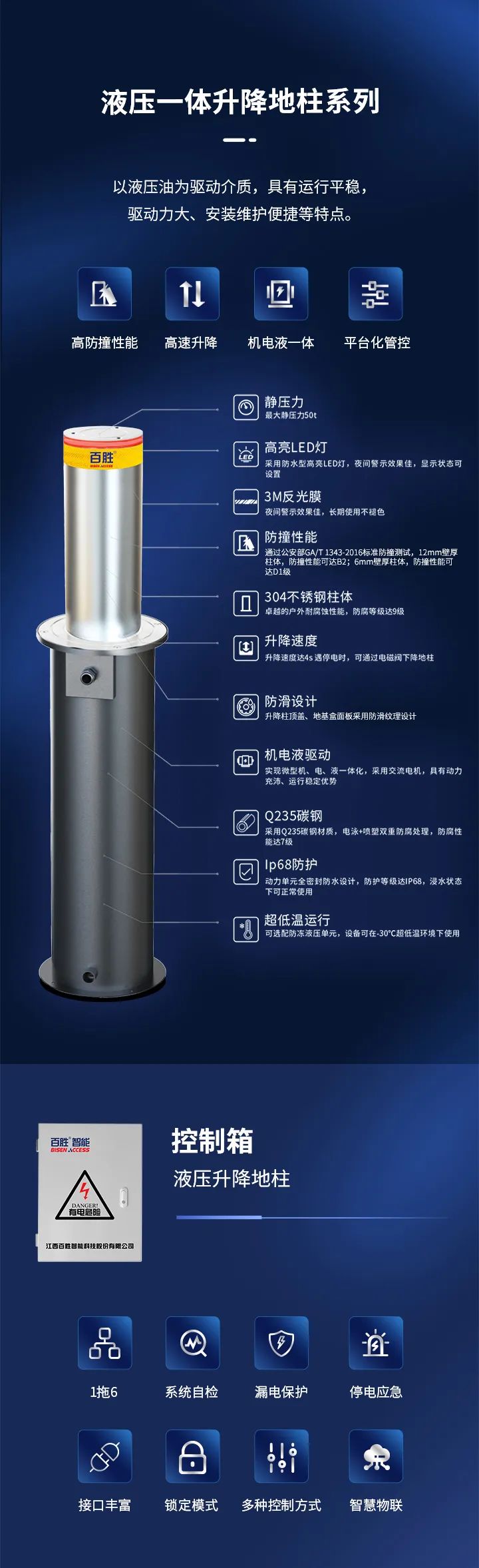 升降地柱在公共場(chǎng)所安全建設(shè)方面扮演著重要的角色,能夠預(yù)防車輛惡性沖撞引發(fā)的巨大傷亡,實(shí)現(xiàn)人車分流、將車輛限制在特定區(qū)域,提升公共安全性。